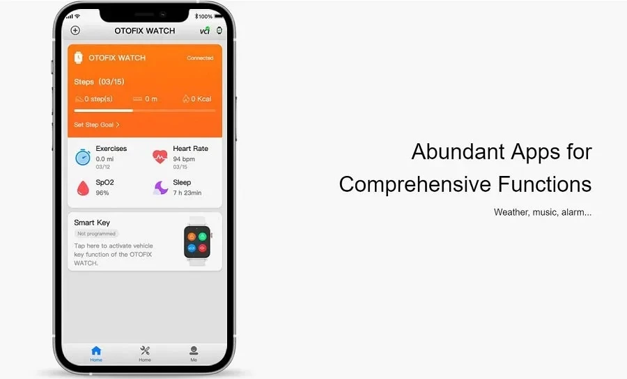 OTOFIX watch is a vehicle key on wrist, which integrates smart key and smart watch functions. The OTOFIX smart watch combines the functions of a vehicle smart key with those of a smart watch into one indispensable personal digital device. It performs all the functions of a smart key-Lock and Unlock doors and Remotely Start-and all the functions you expect from a smart watch, including call and text notifications, exercise apps, and health monitoring. Moreover, OTOFIX watch also supports easy programming via OBD(with optional VCI, which is NOT included).